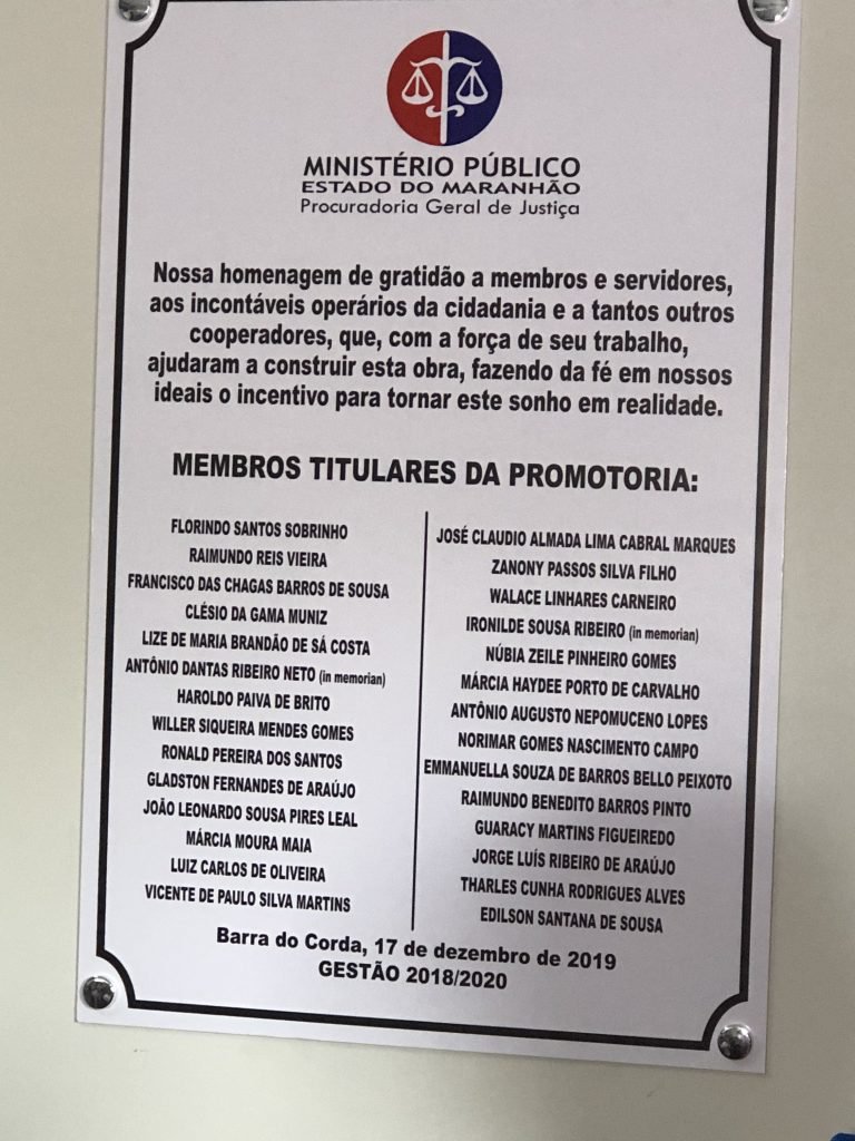 Foi inaugurada na manhã desta terça-feira(17) a sede oficial do Ministério Público no município de Barra do Corda.