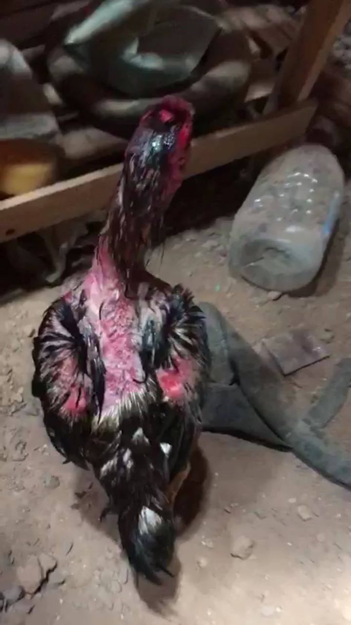 Os galos estavam todos com sinais de maus tratos, cicatrizes na cabeça e falta de penas em partes do corpo, indicando confronto recente entre os animais. Na casa havia um espaço para prática da rinha, conhecido por gaiola de luta ou ringue, e também diversos compartimentos em que os galos ficavam enquanto não entravam em luta.